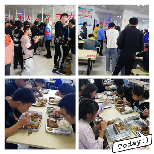 中午11點(diǎn)20分,值班老師來到食堂,首先到后廚查看食堂準(zhǔn)備工作。午餐是牛肉燒土豆、豬肉白菜燉粉條、三色藕片、蒜泥生菜、紫菜蛋湯。已備好的菜肴放在可以加熱保溫的工作臺(tái)上,確保遲來就餐的師生都能遲到熱乎乎的午餐。11點(diǎn)50分,中午放學(xué),學(xué)生陸續(xù)來到食堂就餐。大部分同學(xué)能做到排隊(duì)就餐,但個(gè)別同學(xué)有插隊(duì)現(xiàn)象,值班老師孫蕾、席雪梅在一樓食堂維持排隊(duì)就餐秩序,周道訓(xùn)主任、陸玲玲老師在三樓食堂維持排隊(duì)就餐秩序。各位同學(xué)在落座就餐時(shí),基本都能做到不亂往地面扔垃圾,不大聲喧嘩,保障一個(gè)良好的就餐環(huán)境。在離開食堂時(shí),大部分學(xué)生都將自己的餐盤帶走,減輕工作人員的工作量。